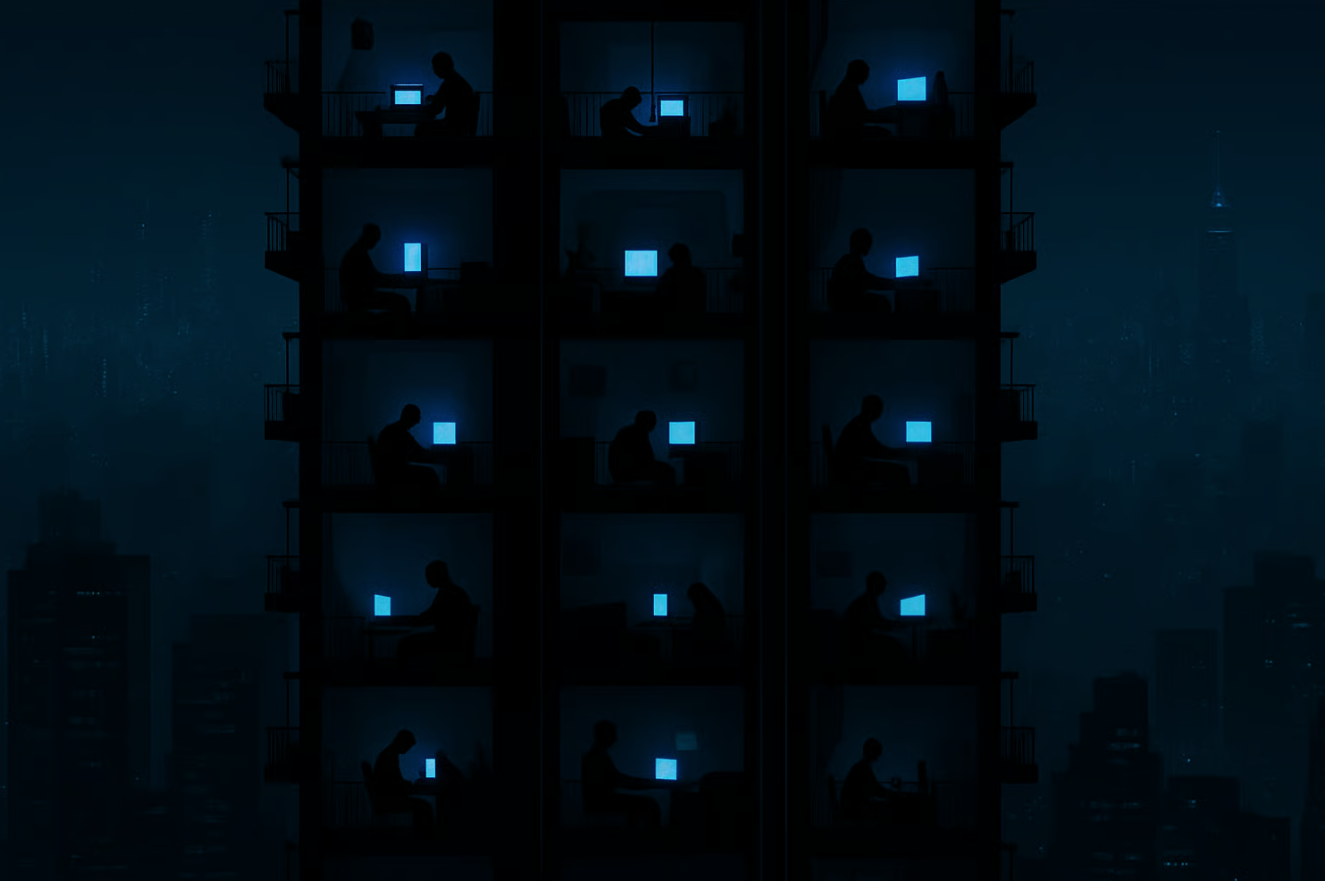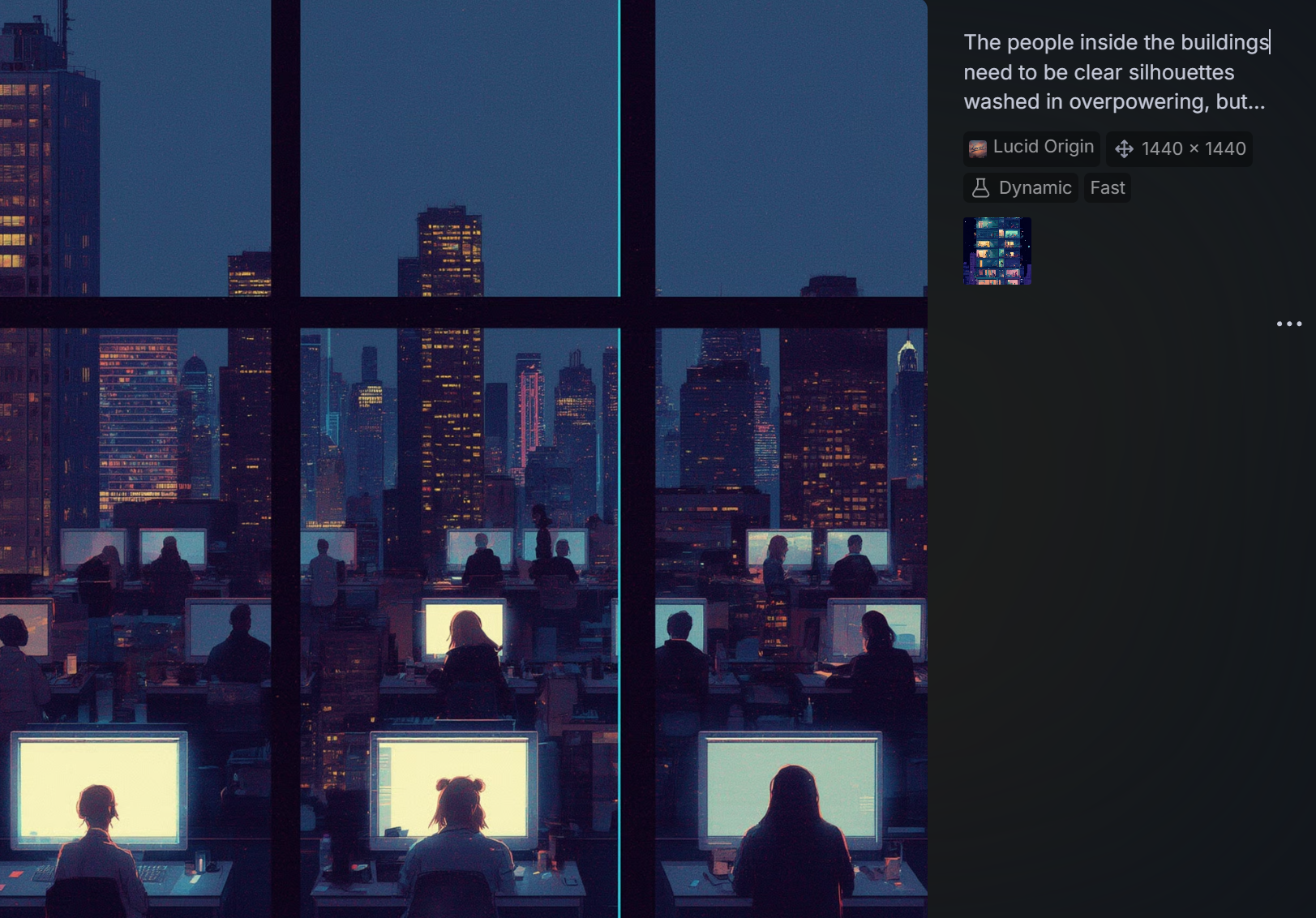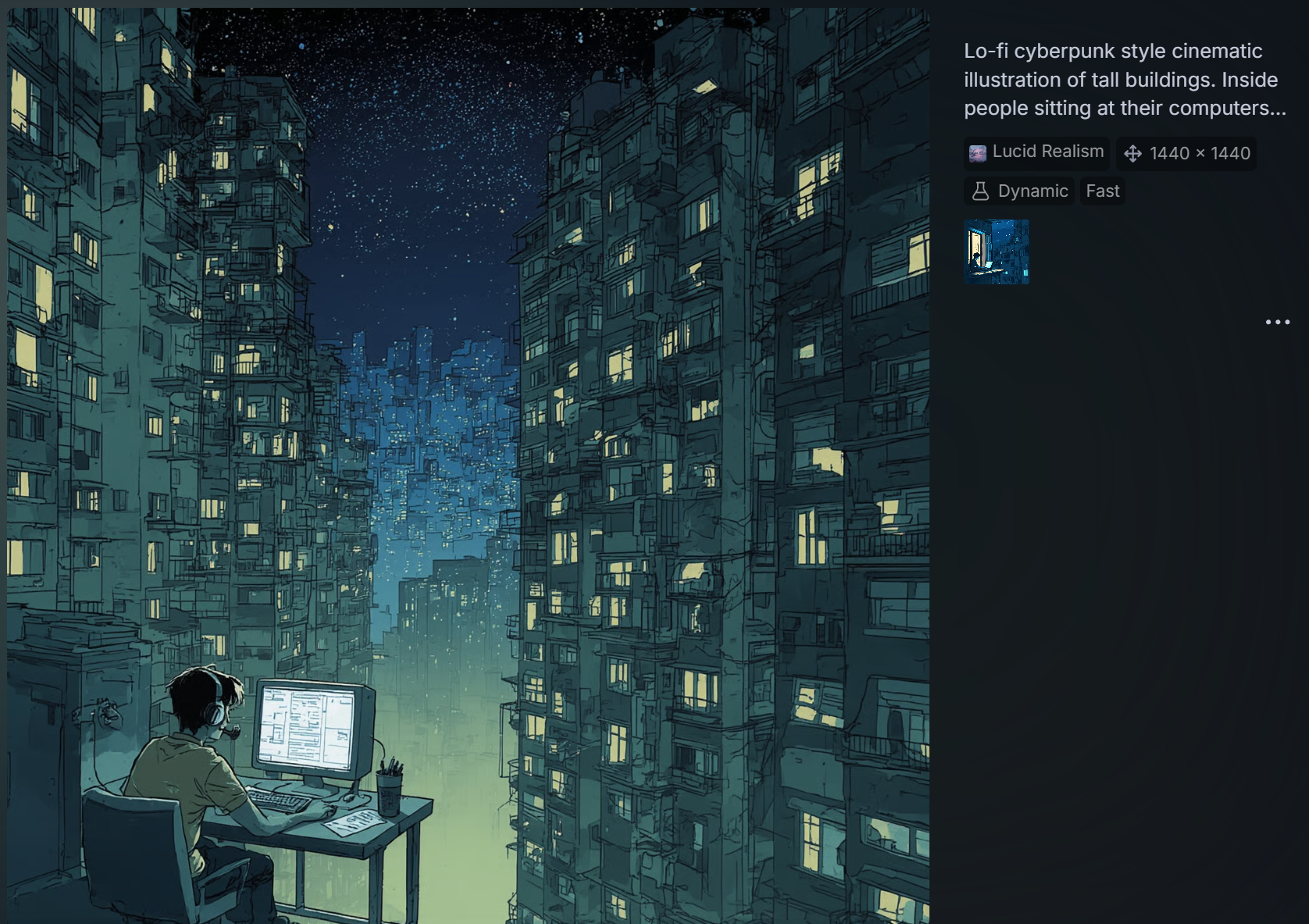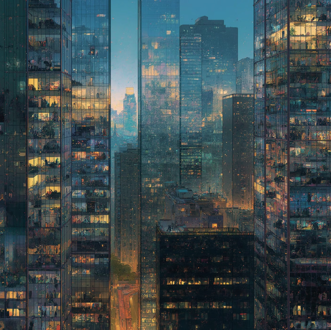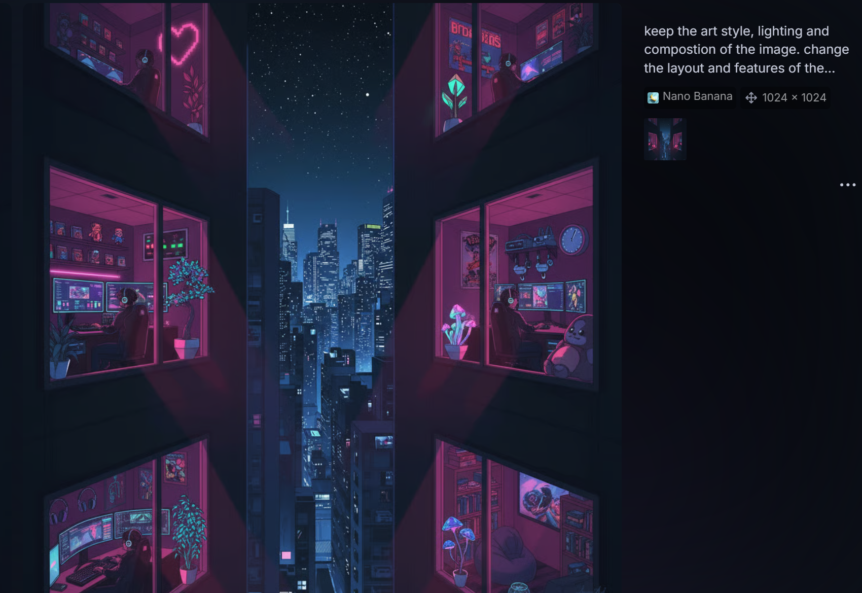 "True to the inherent nature of art, it is the human touch that refines a work to embody those subtleties and nuances only a person can provide. The specific feelings invoked by intentional creative choices. It is the reason one building or skyline "feels" more right than another. It is knowing why four souls, physically separated by the span of pavement far below or a ceiling high above, and sitting alone in the calm ambience of the night, can invoke a commentary on finding one’s place and one’s "people" amidst the conformity of society. It speaks to a peace, and connectedness found within an immersive online community, an acceptance that others may not fully understand. These are depths of perception that AI cannot truly feel. It can only mimic and reflect the surface, alluding to a humanity it does not possess."